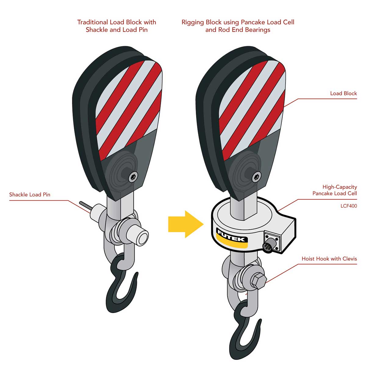 1、荣耀体育(中国) 的 LCF饼状力传感器安装在负载块和起重钩之间,以测量起重机的提升负载。