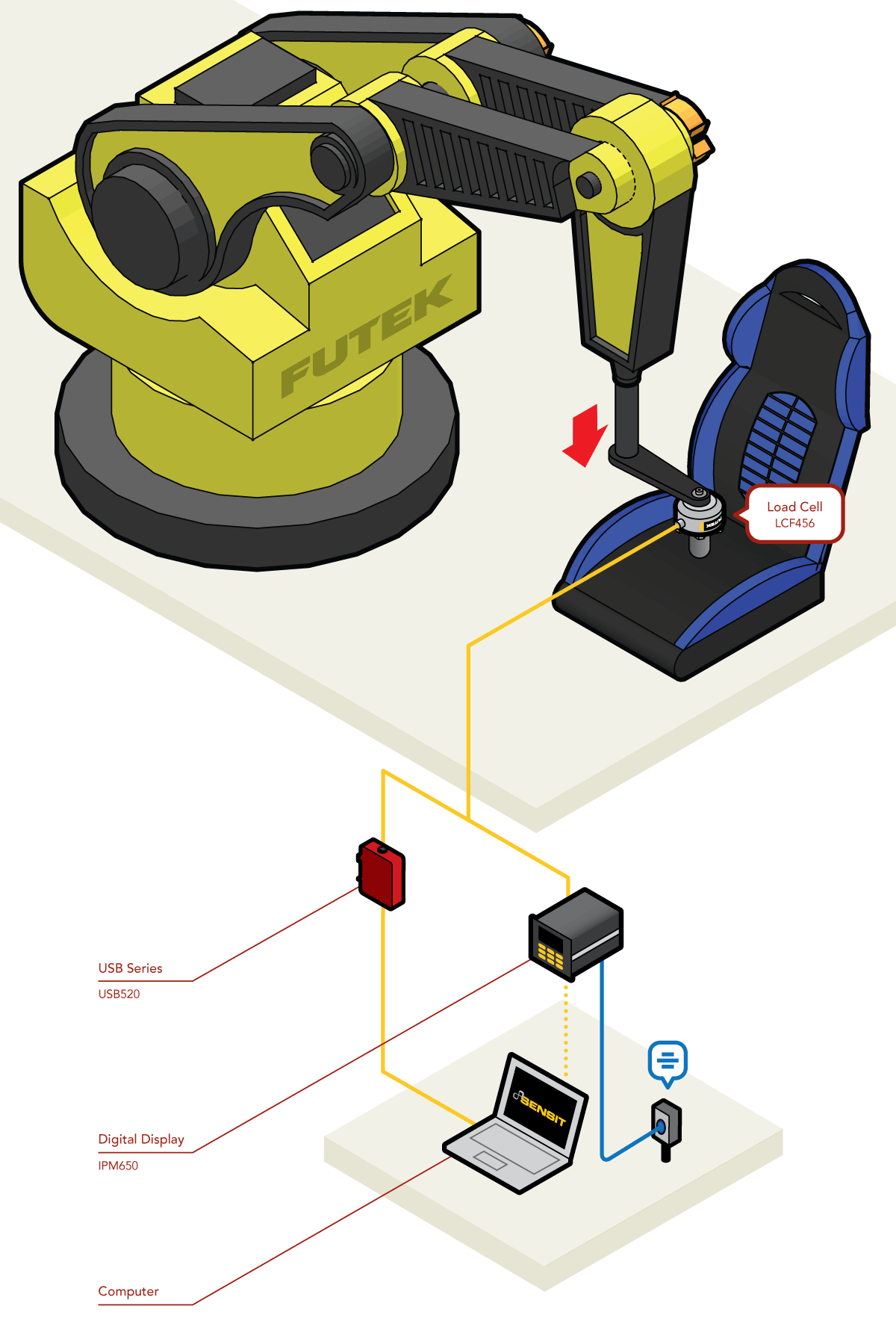 轮辐式力传感器(LCF456)和软件显示方案(如:USB采集方案)。