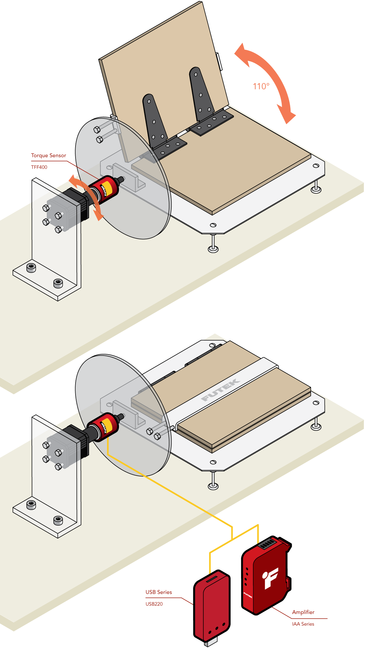 7、此外,与 USB520 配对的 TRS605 将允许记录旋转角度数据,从而研究扭矩与铰链角度。