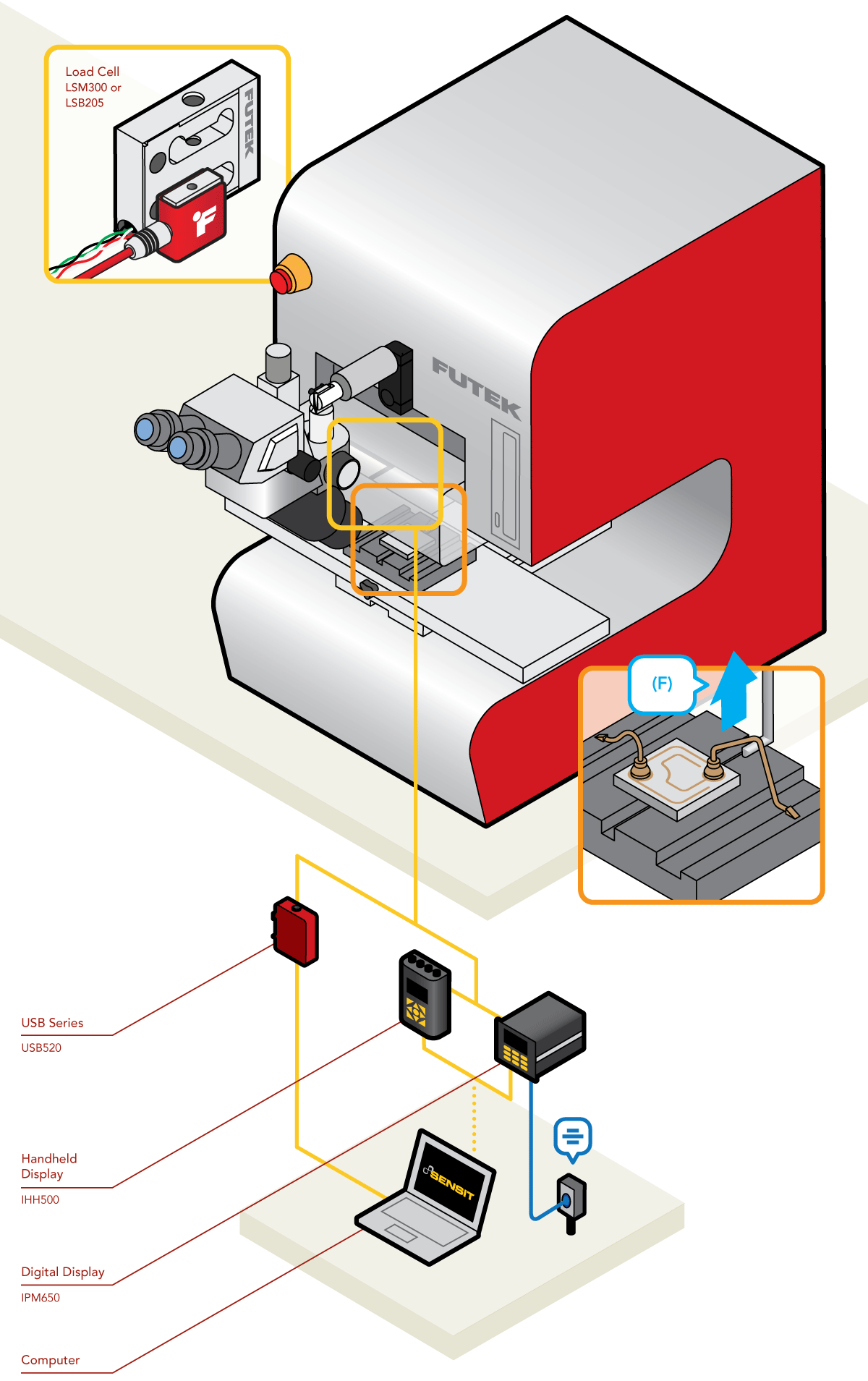 OEM力传感器和精度高的传感器(LCM300或LSB205),及配套的仪器仪表(USB采集模块)。