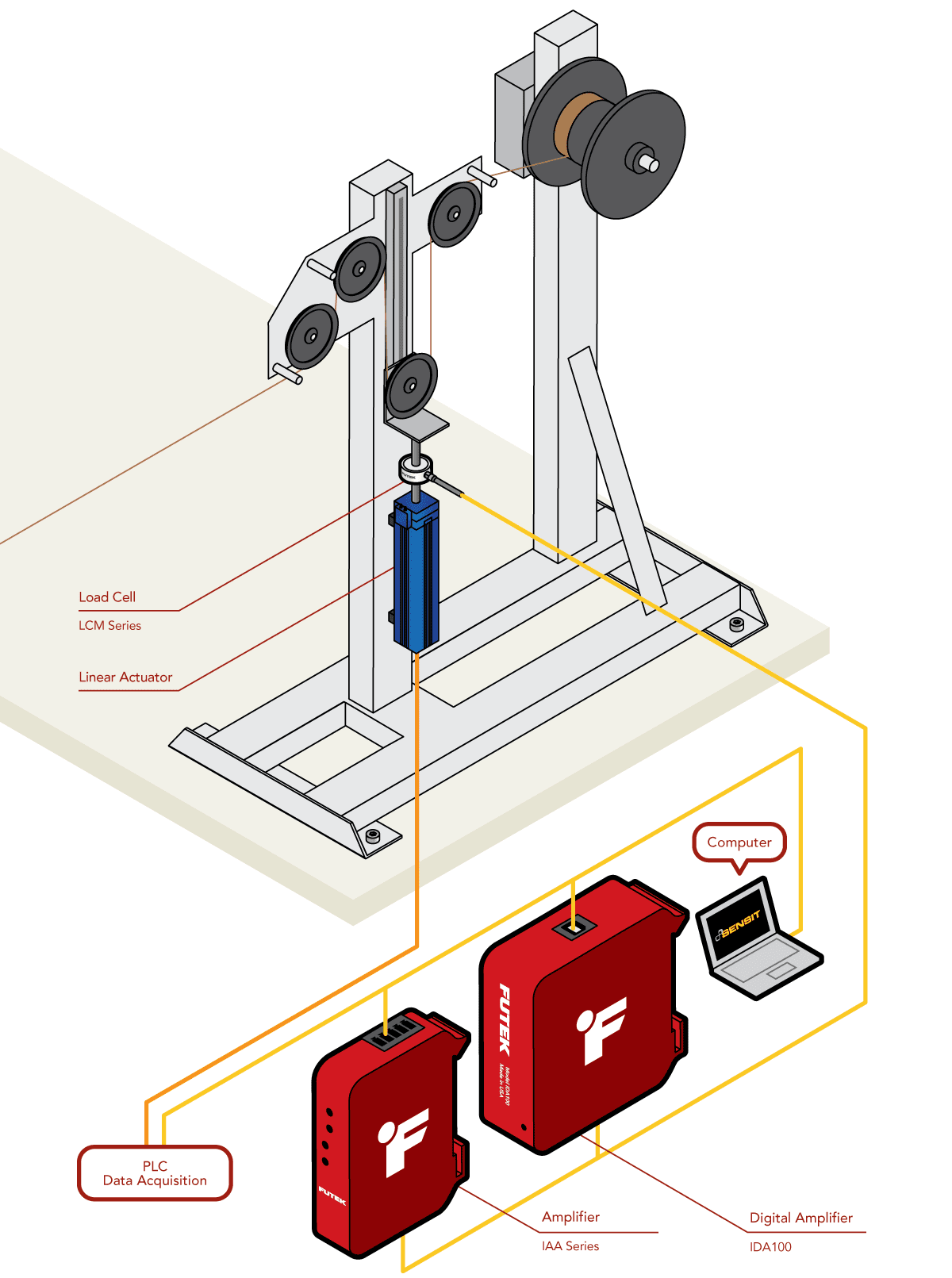 2、调整线性致动器活塞会引起线张力的变化,从而在 LCM 系列测压元件中产生信号。
